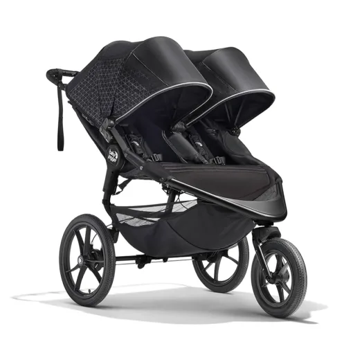 Durable jogging stroller with all-terrain wheels and sun protection.